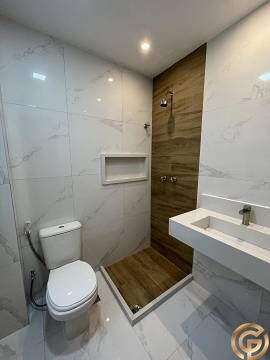 Projeto feito e acompanhado por arquiteto! Banheiros em porcelanato e cuba esculpida em branco prime. Aquecedor eletrônico fornecendo água quente para os chuveiros, pias dos banheiros e da cozinha.