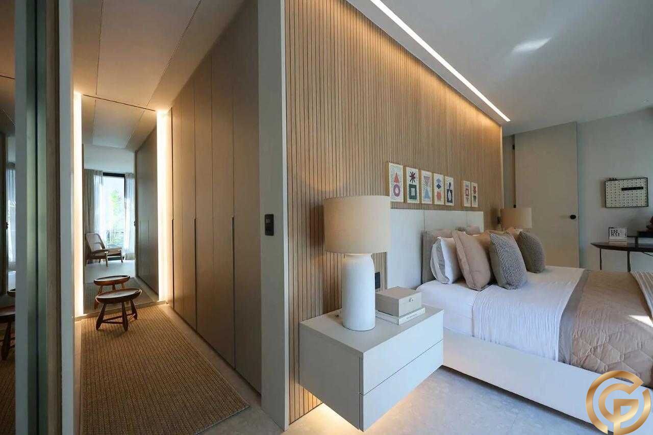 3 quartos: suíte master com closet e dois chuveiros, uma suíte adicional e um quarto de hóspedes.
