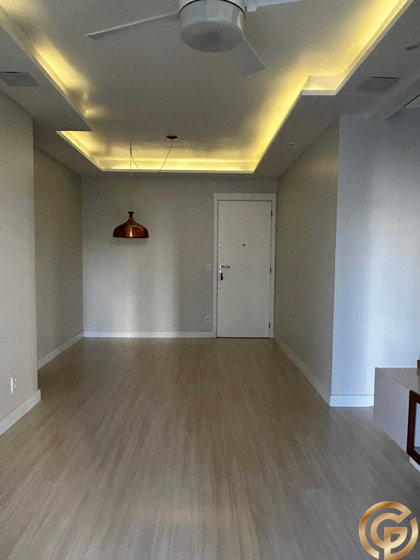 * Piso laminado e teto em gesso com iluminação indireta