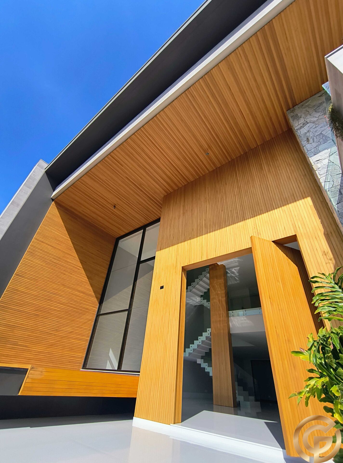 São 5 suítes elegantes, incluindo uma suíte térrea multifuncional perfeita para hóspedes, home office ou uso sênior. A suíte master é um verdadeiro refúgio, com amplo closet, jacuzzi, dois banhos e cubas esculpidas. Os ambientes se destacam pelo pé-direito triplo, portal em madeira ripada, escadarias esculturais, painéis de vidro imponentes e elevador TK conectando todos os pavimentos.