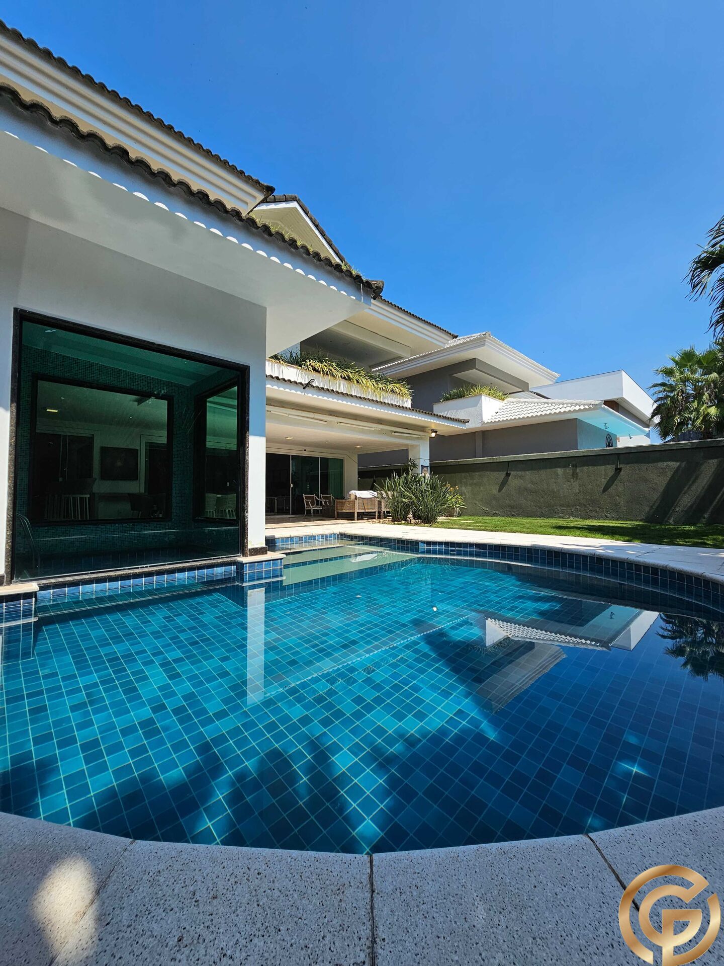 No terceiro pavimento, a casa conta com um espaço extremamente versátil e sofisticado, atualmente configurado como home cinema com projetor, além de banheiro completo, copa de apoio e um amplo salão, ideal para ser adaptado ao estilo de vida da família — sala de jogos, academia, estúdio, lounge ou espaço multiuso.