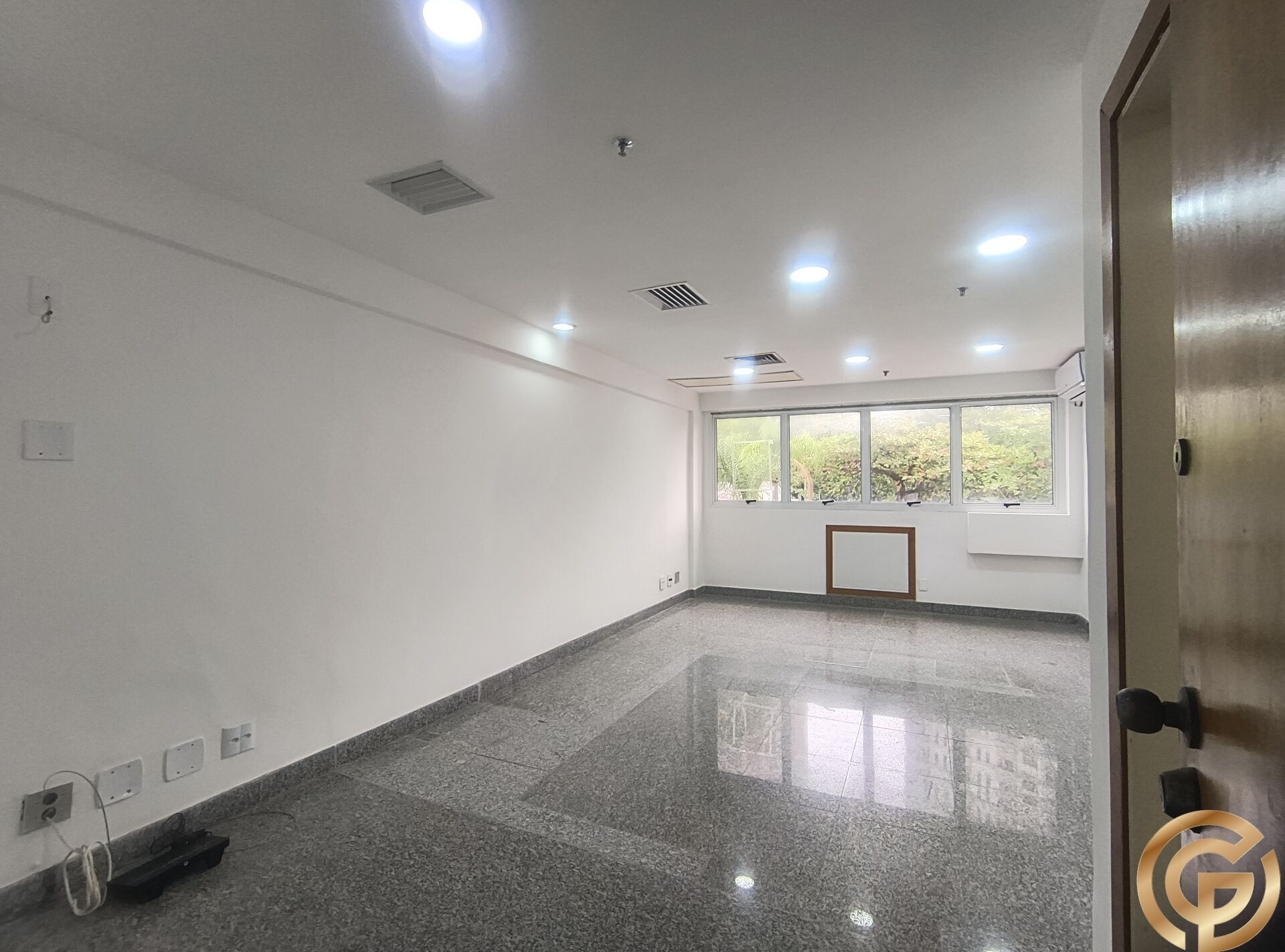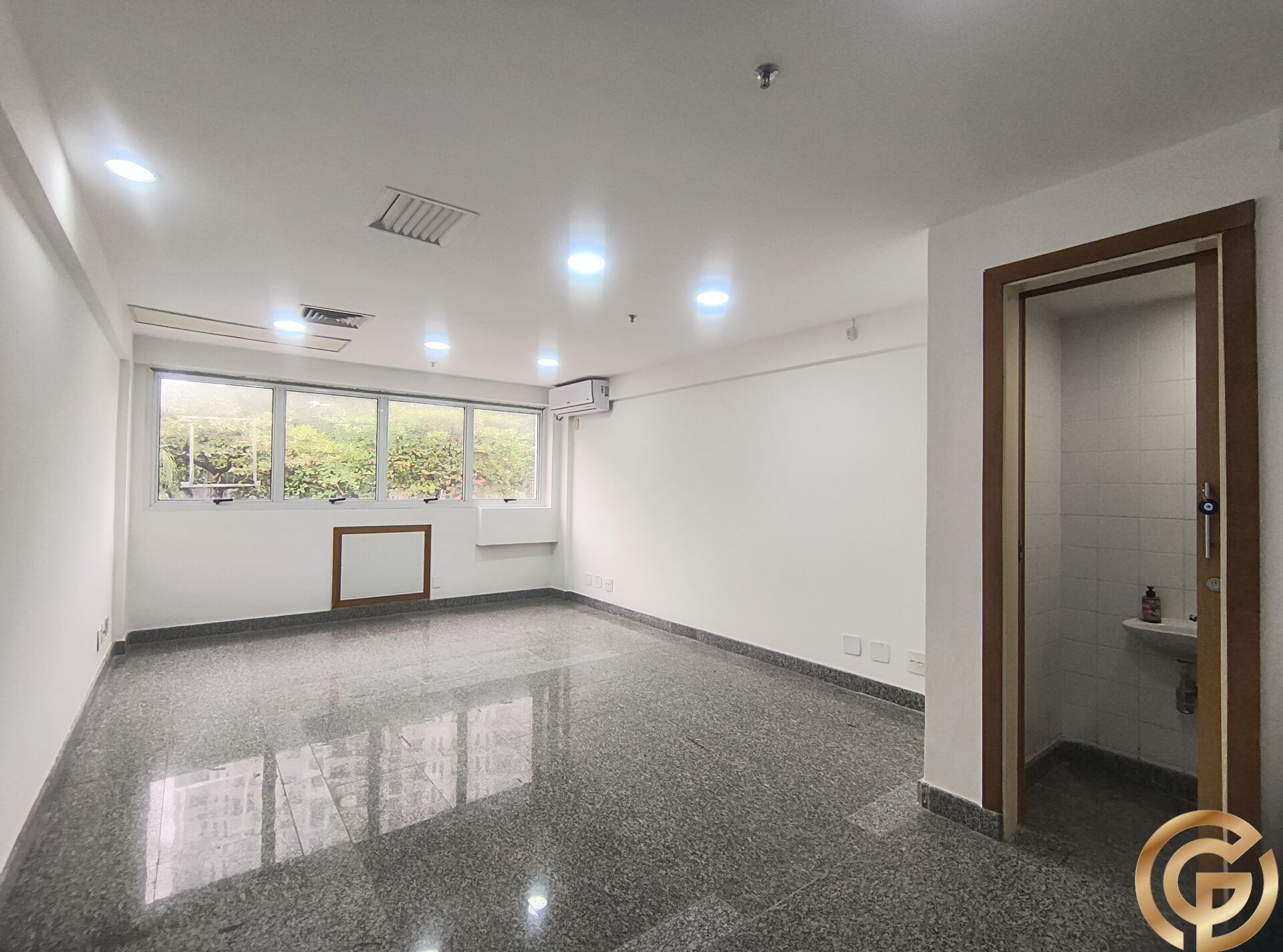 Sala com piso Granito e ar condicionado, no condomínio comercial Midtown, entre a Alvorada da Barra, Barra Shopping e Nova Ipanema. Sala de 27m², com um banheiro , ar condicionado Split novo, janelas amplas e ótima iluminação natural, com direito a utilização do estacionamento, vista para praça interna e sol da manhã.