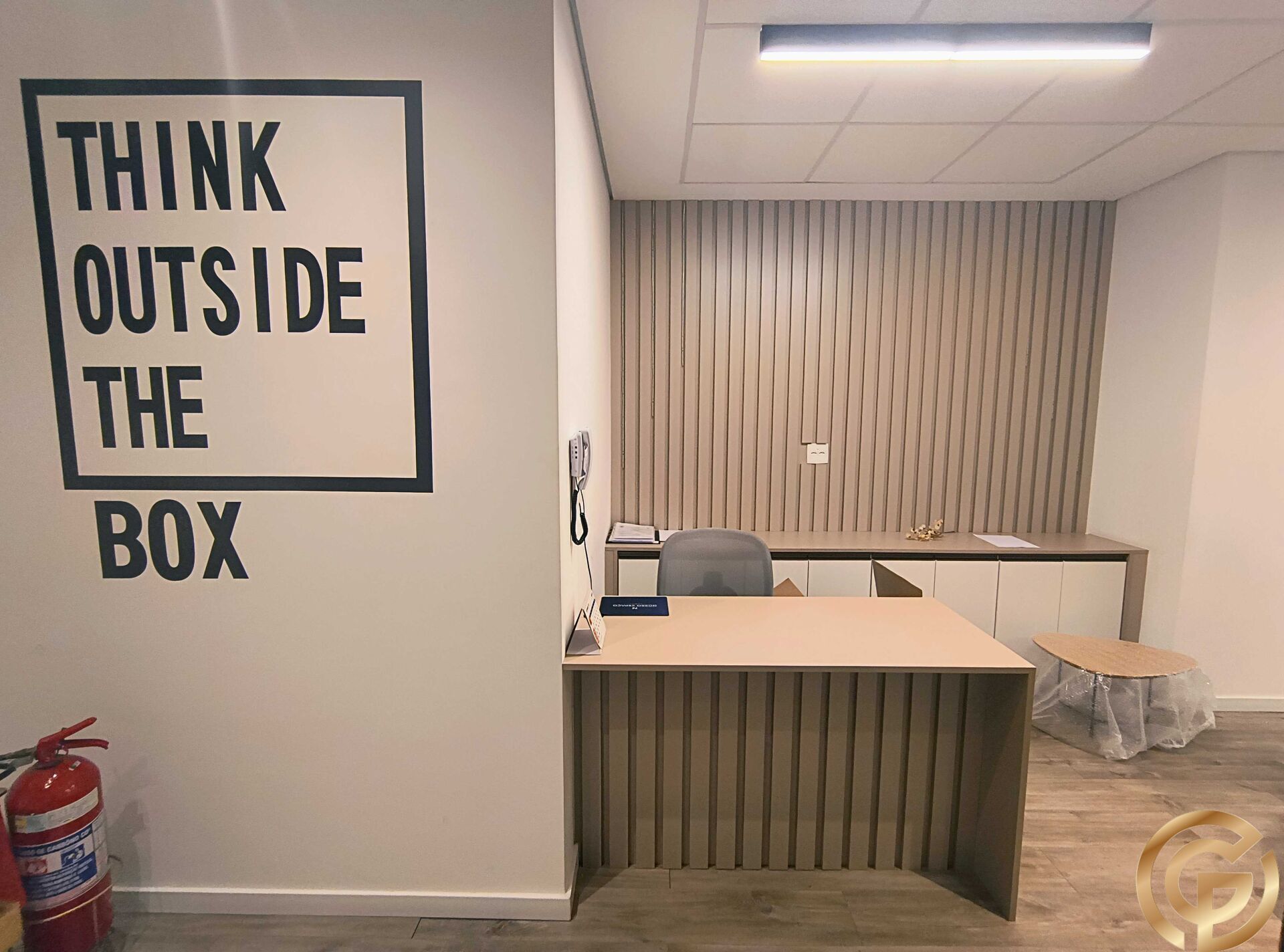 Configuração: espaço para recepção, espaço para sala de reunião e salão principal, copa/cozinha, depósito e 2 banheiros